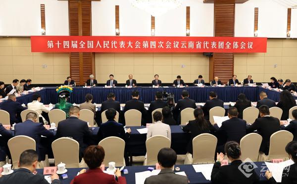 3月3日下午,出席第十四届全国人民代表大会第四次会议的云南省代表团举行全体会议。