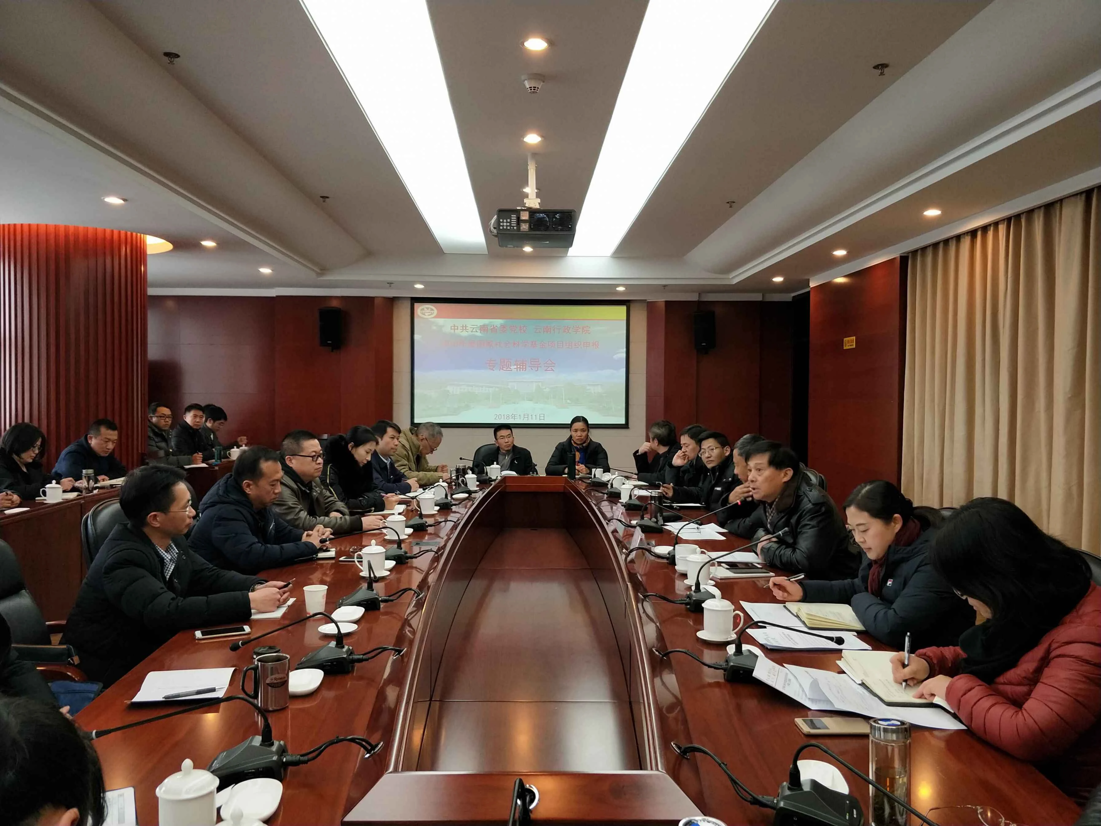 1月11日下午,中共云南省委党校(云南行政学院)召开2018年度国家社会科学基金项目申报专题辅导会。欧黎明副校(院)长出席会议并作动员讲话,会议特邀云南省享受国务院特殊津贴专家、全国社科规划办国家社科基金项目评审专家、云南民族大学原副校长和少英教授就2018年度国家社科基金项目申报作专题辅导。会议由科研处副处长白亚鹏主持。校(院)15个教研、教辅部门负责人、项目申报人员及科研处全体人员共计60余人参加会议。