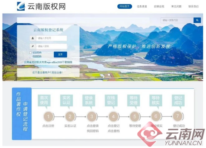 以往,云南省的作品都是依靠线下登记,需要著作权人或代理人携带纸质材料到省版权管理部门进行纸质登记,登记过程比较麻烦,特别给昆明以外的州市著作权登记带来很多不便。云南版权管理部门通过广泛调研与筹备,投入人力财力,于2019年12月建成云南版权网——云南版权作品登记系统并上线运行,逐步将云南的作品登记从线下转移到线上登记。申请登记作品人员只要在网站进行实名登记,然后按照作品登记流程提交材料即可,作品登记一旦被受理,将在7日内完成审核审批。凡通过审批的作品登记,由版权管理部门发放电子版作品登记证书。登记系统投入使用两个多月来,给著作权人提供了极大的便利,截至目前受理作品登记595件,达2019年全年登记总量的一半多。(云南省版权局 供稿 供图)