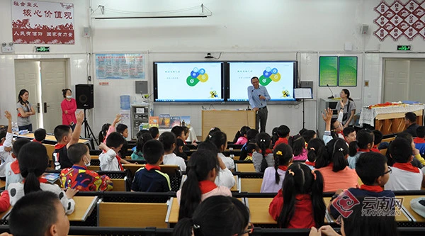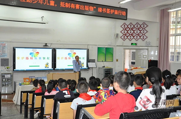 “我创作的作品,要写我的名字,没我同意,不准复制……”9月17日,由云南省“扫黄打非”领导小组办公室主办、昆明新华书店协办的“绿书签”系列宣传活动走进昆明市盘龙区新迎第二小学,为近百名小学生带去了一堂生动有意义的护苗课堂。