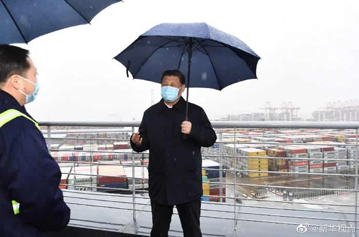 习近平总书记29日在浙江考察调研。当天下午,他先后来到宁波舟山港穿山港区码头、北仑大碶高端汽配模具园区,了解港口和园区企业复工复产情况。(记者:杨维汉、朱基钗/摄影:鞠鹏、申宏、燕雁 )