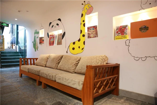 三是儿童区域。儿童区由柱子、墙体等支撑物与主空间隔开,形成了一个相对独立的空间。这样的设计考虑了儿童好动、喜玩的特点,将孩童的嘈杂寄于一隅,不影响书店的整体氛围。儿童区还放置了沙发,给家长提供休闲空间,便于陪伴孩子一起阅读。