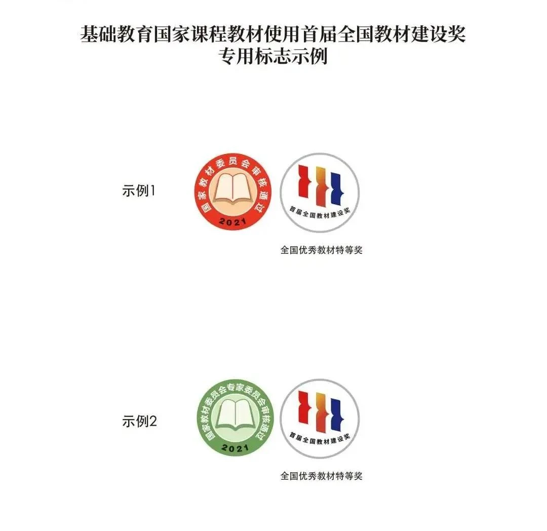 基础教育国家课程教材使用首届全国教材建设奖专用标志示例