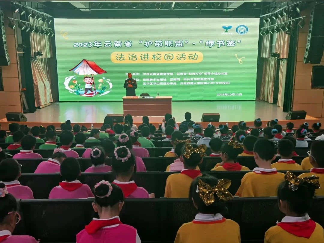 为大力弘扬社会主义核心价值观,不断提高未成年人的法治意识和法治素养,持续增强未成年人自我保护意识,从小养成自觉尊法、学法、守法、用法的行为习惯。10月12日,中共云南省委宣传部、云南省“扫黄打非”领导小组办公室携手“护苗联盟”成员单位齐聚云南师范大学附属小学文林校区,举办2023年“护苗联盟”·“绿书签”法治进校园活动。