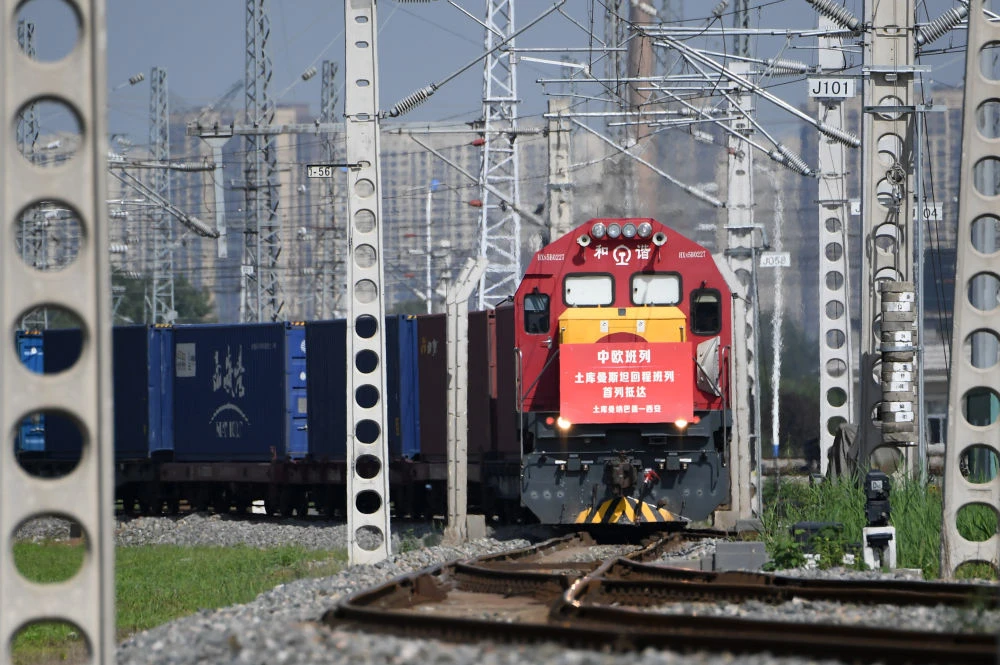 “长安号”“义新欧”“渝新欧”“郑新欧”“蓉新欧”……放眼广袤的亚欧大陆,一班班“钢铁驼队”往来驰骋,连点成线,在西安、义乌、重庆等中国城市与塔什干、阿拉木图等中亚重镇之间重现古丝路商贾往来、互通有无的盛景。