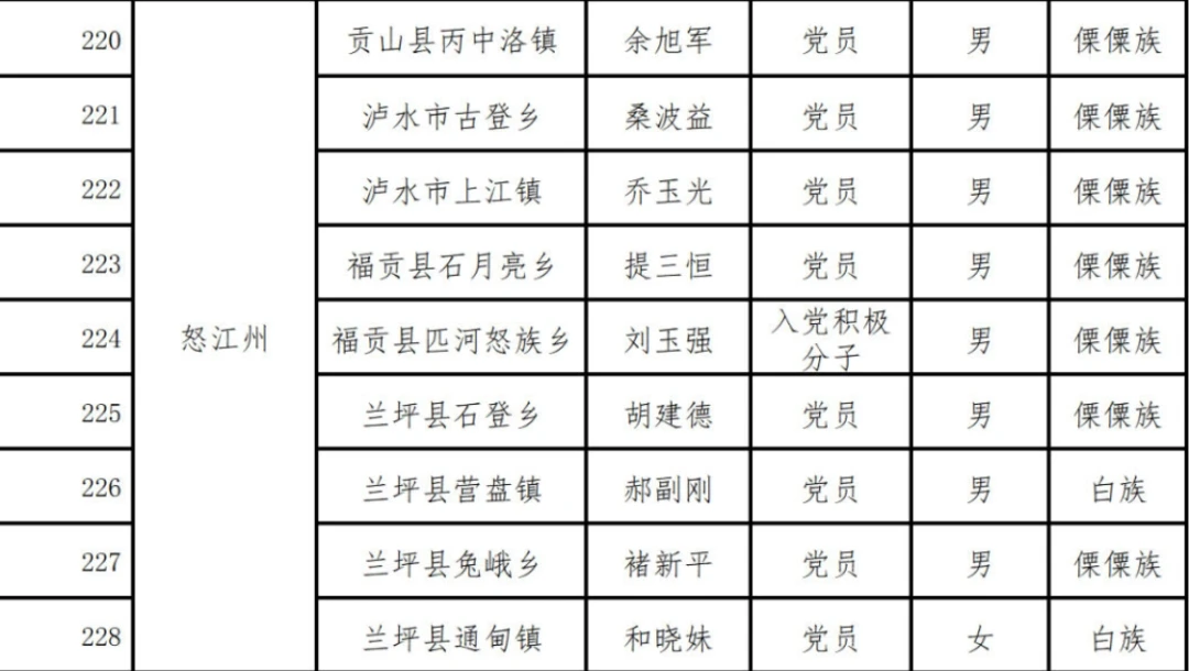 其中怒江9人拟获表扬