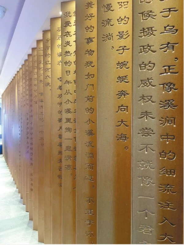 青溪书店前台用不同诗词构成背景墙。 本报记者 浦美玲 摄