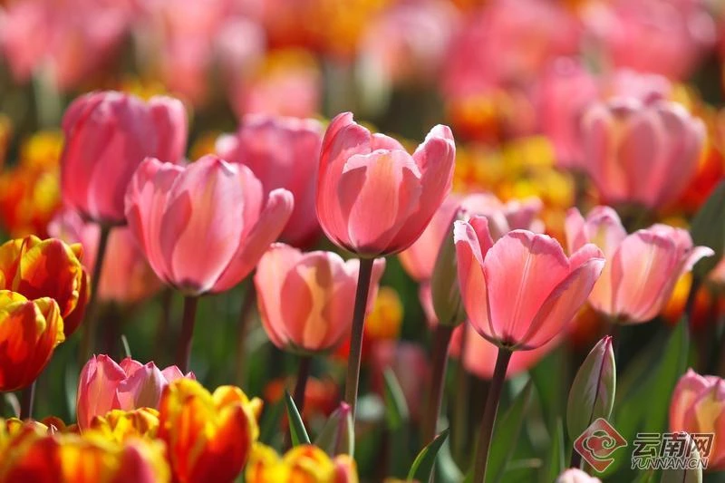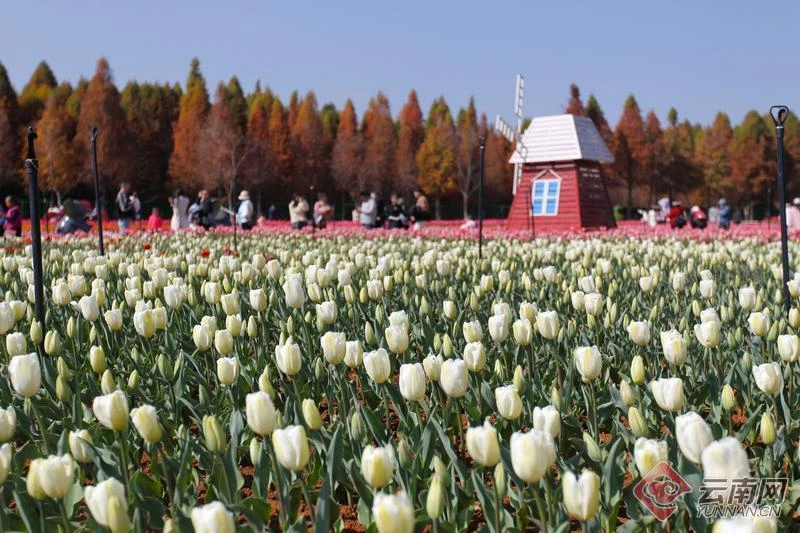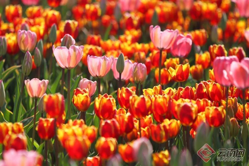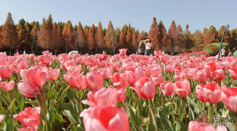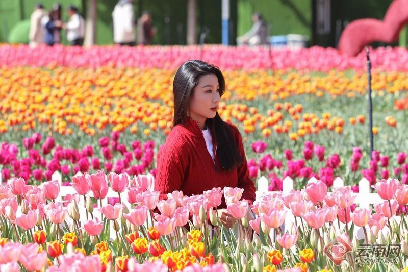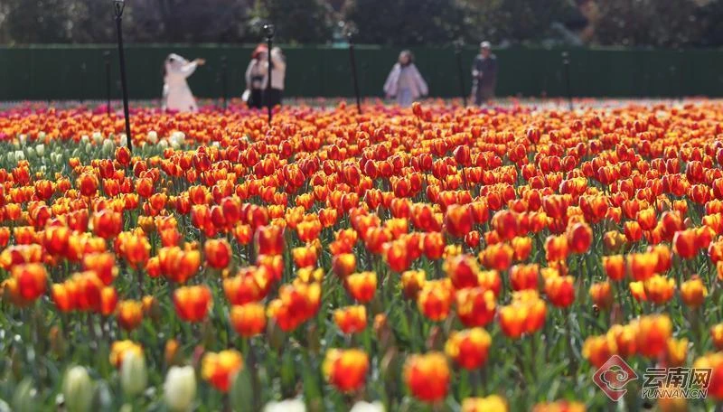 “春风吹开郁金花,红白粉紫落彩纱。”近日,昆明市捞鱼河湿地公园的郁金香绽放,近百万株郁金香构成的“花海”为春城昆明点缀了一抹绚丽的色彩,吸引众多市民、游客前来观赏。