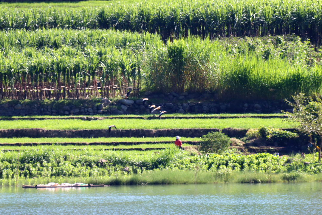 初晨,云雾缭绕的澜沧江江面上,各类水鸟、鸭子肆意玩耍,一派“春江水暖鸭先知”的景象。