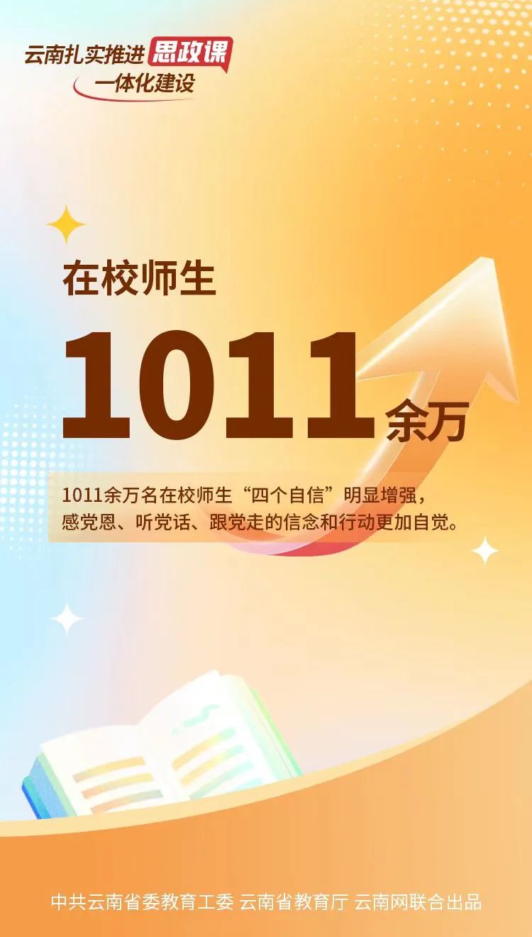 云南省1011余万名在校师生“四个自信”明显增强,感党恩、听党话、跟党走的信念和行动更加自觉。