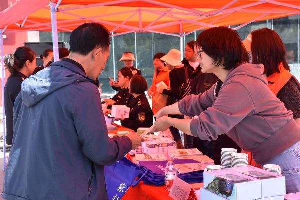 工作人员向过往市民作宣传。(杨四娟 摄)