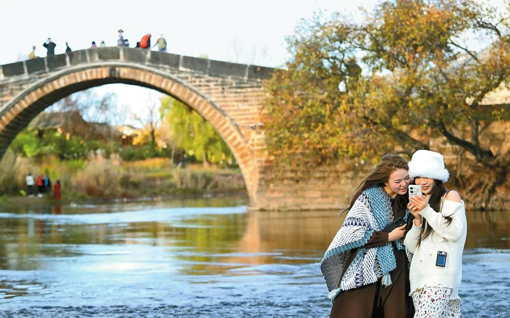 冬日里的沙溪古镇,阳光正好。各地游客慕名而来,在寺登街上漫步,选购特色工艺品;在玉津桥上吹风,穿上民族服装旅拍,流连于质朴、静谧又充满诗情画意的古镇风景中,让“有一种叫云南的生活”更加有滋有味。