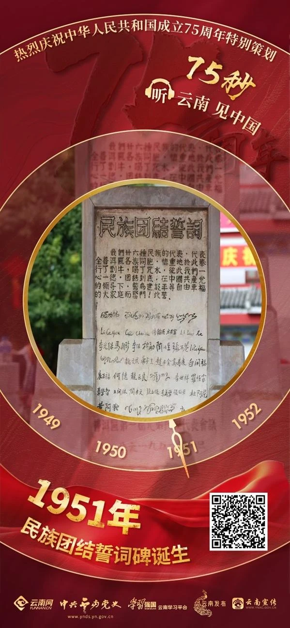 不忘来时路,方知向何生。75秒,听见75年的变迁,为波澜壮阔的75年喝彩,为更加美好的明天奋斗。今天,让我们开始第2期《1951年,民族团结誓词碑诞生》。