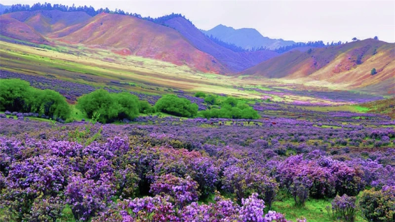 兰坪的罗古箐静默地铺陈着一幅被时光遗忘的丹霞画卷。亿万年前形成的红色砂砾岩层,在风雨侵蚀下雕琢成赤壁丹崖的壮丽奇观——石峰如柱如塔,姑娘山巍峨耸立。夏季来临之时,大羊场高山草甸上杜鹃花海从山顶倾泻而下,将连绵山峦染成粉红粉紫的斑斓梦境。