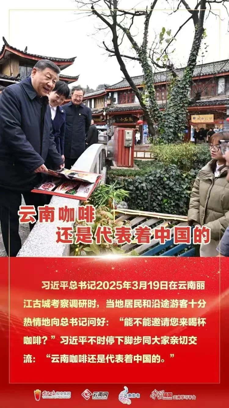 习近平来到云南丽江古城,沿着石板路边走边看。当地居民和沿途游客十分热情地向总书记问好:“能不能邀请您来喝杯咖啡?”习近平不时停下脚步同大家亲切交流:“云南咖啡还是代表着中国的。”