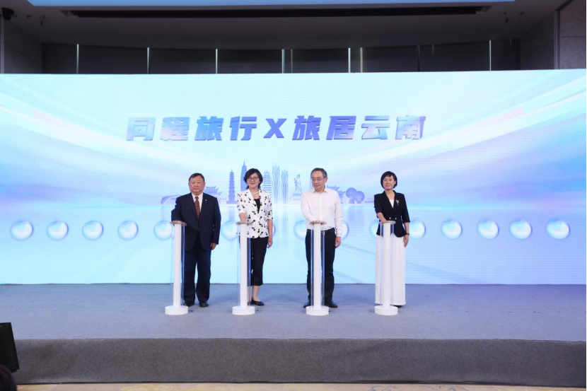 随后,同程旅行集团副总裁李明浩发布并上线“旅居云南服务平台”,该平台依托AI智能推荐,整合住宿、餐饮、交通、康养等一站式服务,首批上线2000余家精品民宿、300条康养套餐。上海市政府合作交流办公室副主任强鹏程、上海市文旅局二级巡视员张枝俏、云南省文旅厅副厅长刘丽娜、同程旅行集团副总裁李明浩共同启动平台。
