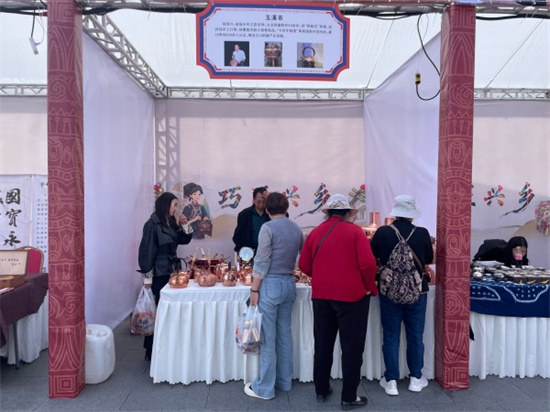集市上,乡村工匠正在向游客介绍自己的手工艺品。云南网记者 李品娥 摄