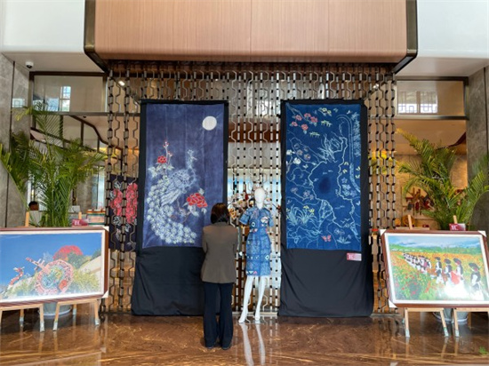 游客正在驻足观赏云南扎染手工艺品。云南网记者 李品娥 摄