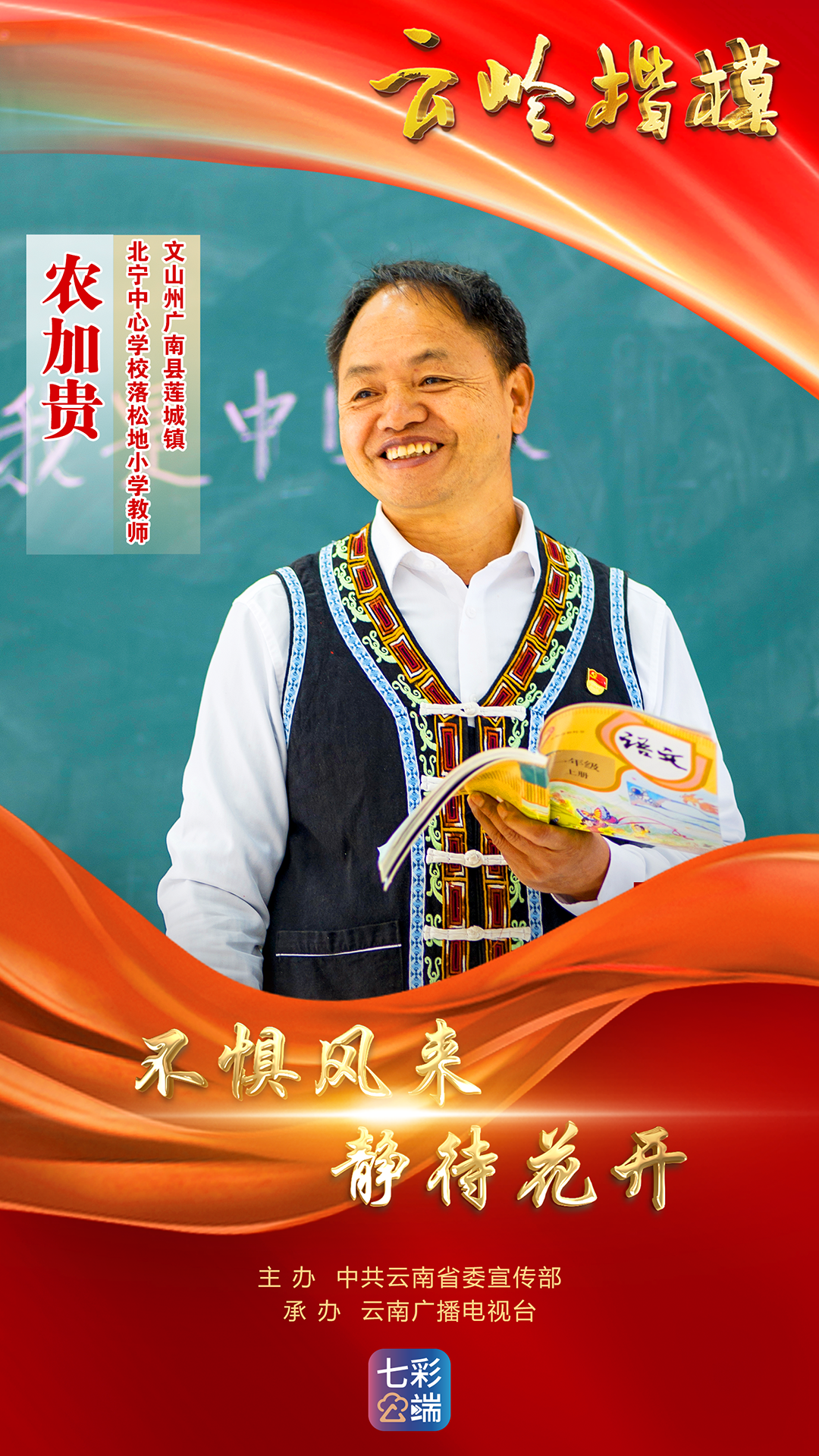 1986年,20岁的农加贵迎风而上,走进被称为“禁区”的“麻风村”,担任代课教师。从此,他把自己的勇敢和青春奉献给了这片土地,把自己的智慧和坚守融入了这片土地,点燃了深山里孩子们的人生梦想。他用39年不变的坚守,参与和见证“麻风村”脱贫致富、振兴发展的美丽“蝶变”,把120多名学生送出大山,用青春年华谱写了推进乡村教育的奋斗篇章。