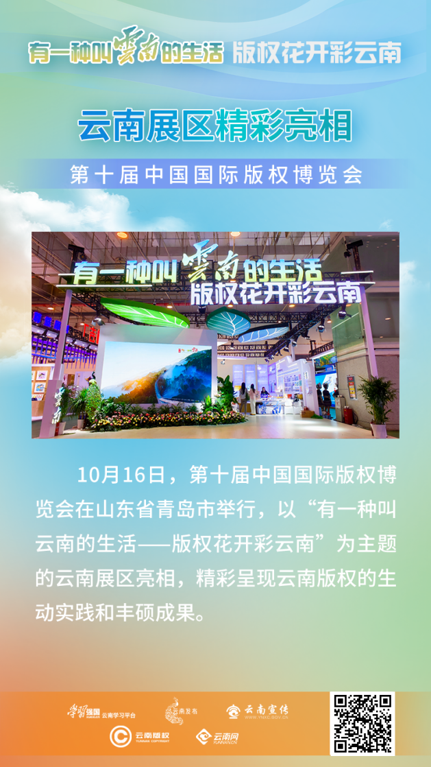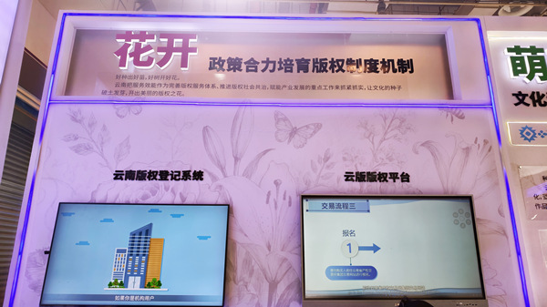 云南展区位于4号馆,以“有一种叫云南的生活——版权花开彩云南”为主题,用“版权之花的生长”生动讲述云南版权故事,14家文化企业携版权作品集中亮相,从版权管理、保护、应用、产业发展等方面,展现云南版权丰硕成果。
