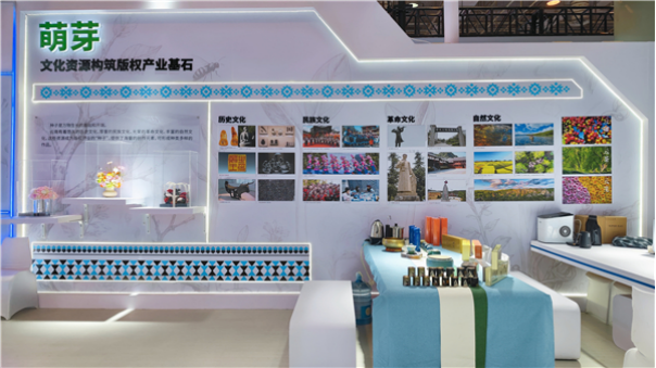 展区以蓝绿色为主基调,突出云南的绿色生态之美,以“花”为主线布局,通过“萌芽—花开—硕果”的成长脉络,形象展现云南如何将独特的民族民间文化资源“种子”,借助版权赋能转化为文化生产力,最终结出丰硕的版权“硕果”,丰富和延展“有一种叫云南的生活”的内涵,彰显云南在版权保护与文化创新中的实践与成就。