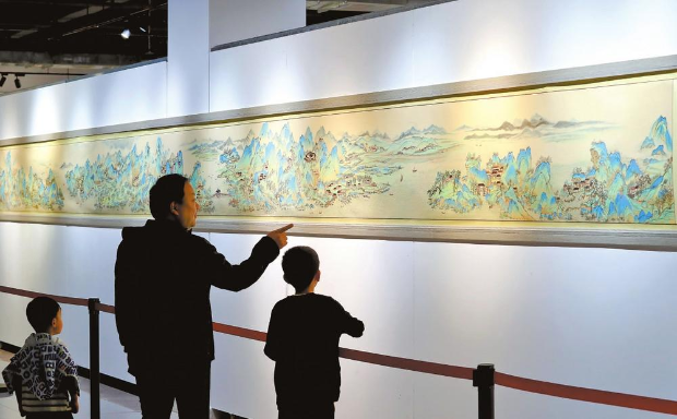 国庆中秋假期,昆明市五华文化艺术中心举办的《礼赞国庆》书画作品展吸引了大量市民前来观展。作为云南民族画院庆祝中华人民共和国成立76周年“美育惠民”系列活动的重要内容之一,该展览聚焦孙明、唐永萍、赵冬梅3位艺术家的精品力作,通过艺术家们娴熟精湛的笔墨将祖国的壮美山河、民族和谐与时代风貌呈现给观众,以艺术之美传承中国书画的文脉精神。(记者 杨峥 摄)