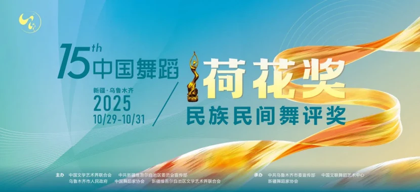 由中国文学艺术界联合会、中共新疆维吾尔自治区委员会宣传部、乌鲁木齐市人民政府、中国舞蹈家协会、新疆维吾尔自治区文学艺术界联合会主办的第十五届中国舞蹈荷花奖民族民间舞评奖于10月29日至31日在乌鲁木齐市举行终评展演。