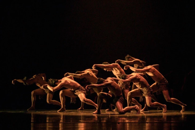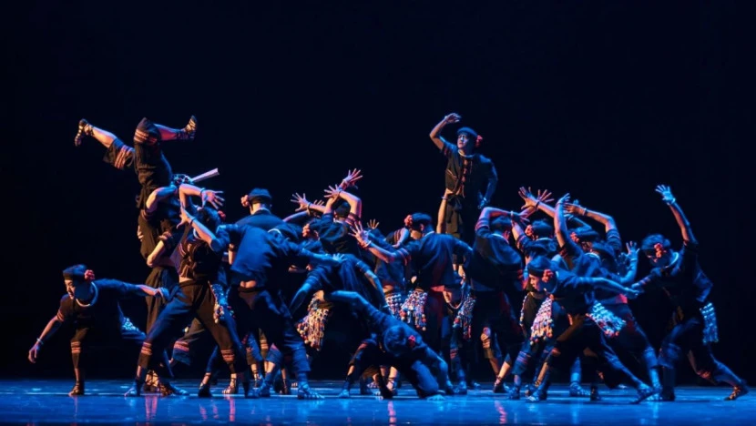 《望山》以景颇族男子群舞的方式,生动诠释景颇族男人如山峰般深厚的责任与力量,同时,在“山”之意象中呈现景颇族的精神图腾。