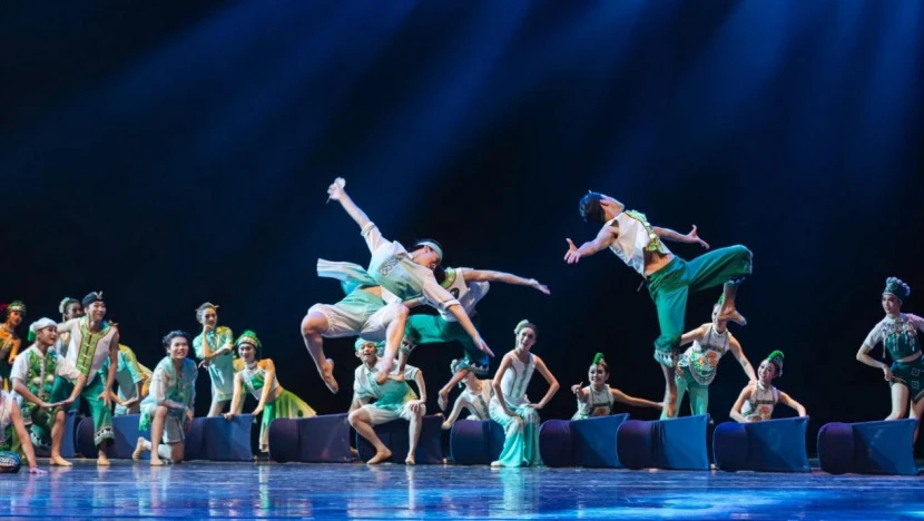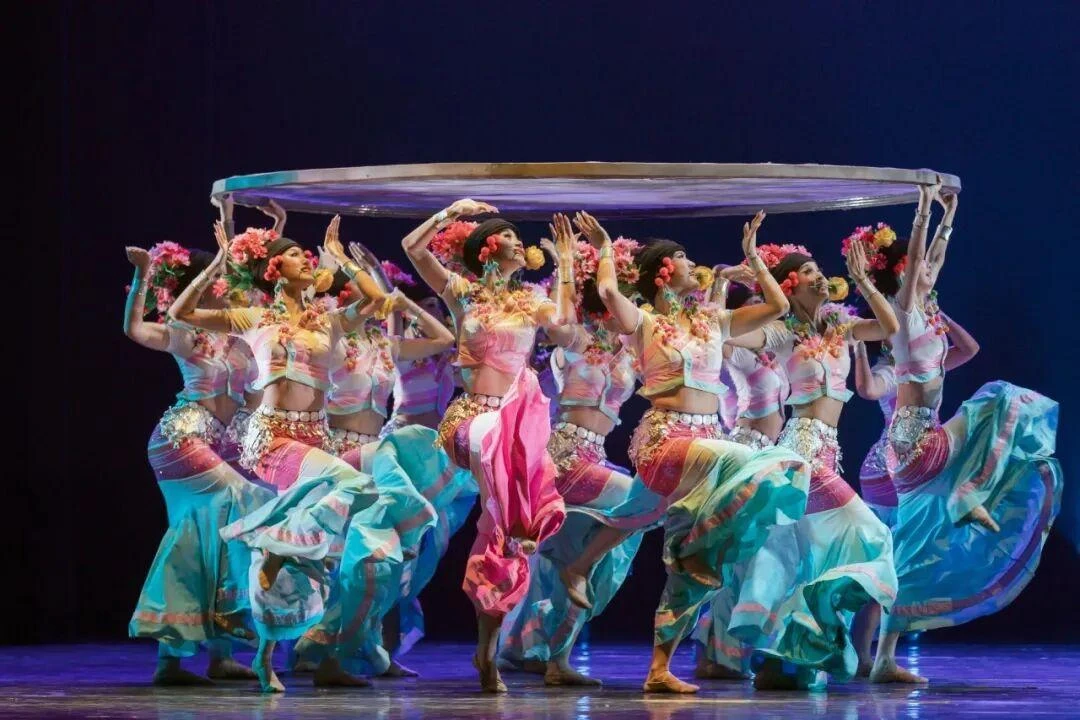 傣族舞蹈《太平有象》以生态文明建设为主题,以亚洲象北上南归的真实故事为缩影,构建人与自然和谐共生的图景,傣族舞蹈的传统韵律与“拟象”姿态相契,在完成祥瑞象征的同时,尽情讴歌当下的太平盛世,礼赞新时代。