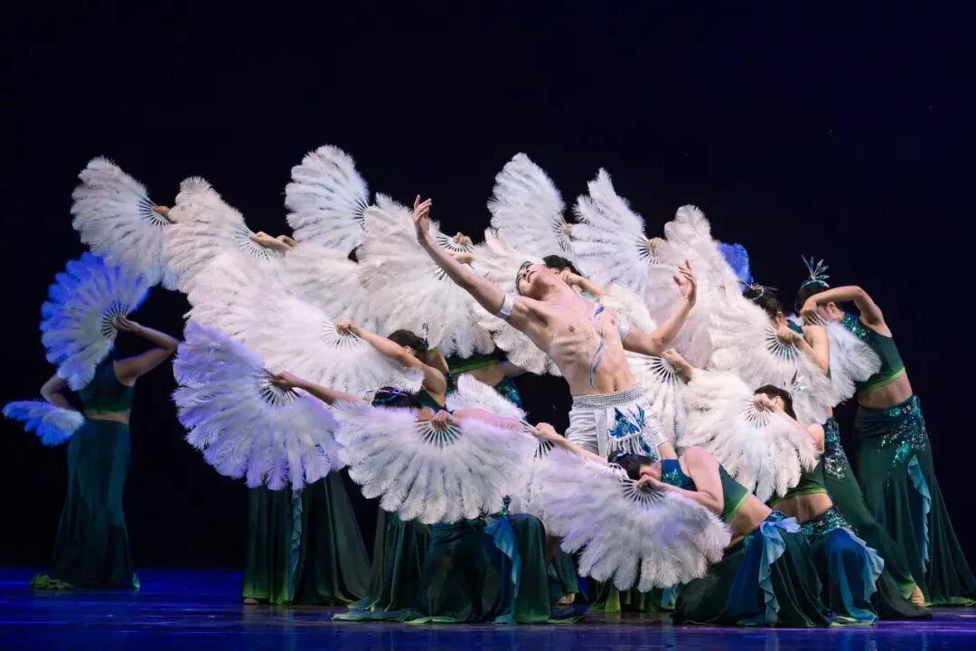 《森灵》用白色羽毛扇为道具,在细腻精巧的动作语言中将白孔雀羽毛姿态的灵动铺展蔓延,在与独舞演员的配合下,形塑“形神兼具”的“森灵”具象,他们不仅是自然生灵的象征,更是人与自然和谐共生的生命赞歌。