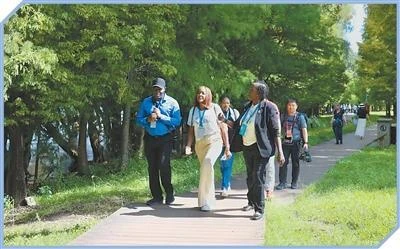 中外媒体嘉宾到云南大理白族自治州洱海生态廊道参观采访。记者 蒋雨师 摄