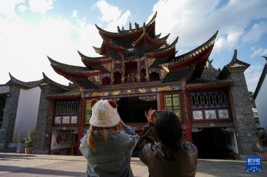 3月25日,游客在会泽古城拍摄江西会馆。江西会馆又称万寿宫,始建于清康熙年间。新华社 记者 张铖 摄
