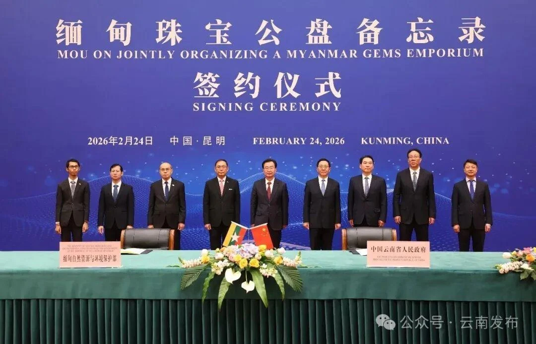 会见结束后,缅甸自然资源与环境保护部常务秘书腊貌登、云南省副省长刘勇分别代表双方签署关于在瑞丽姐告共同举办缅甸珠宝公盘的备忘录。根据备忘录,双方将开展珠宝玉石展示交易、宝石工艺培训等合作。
