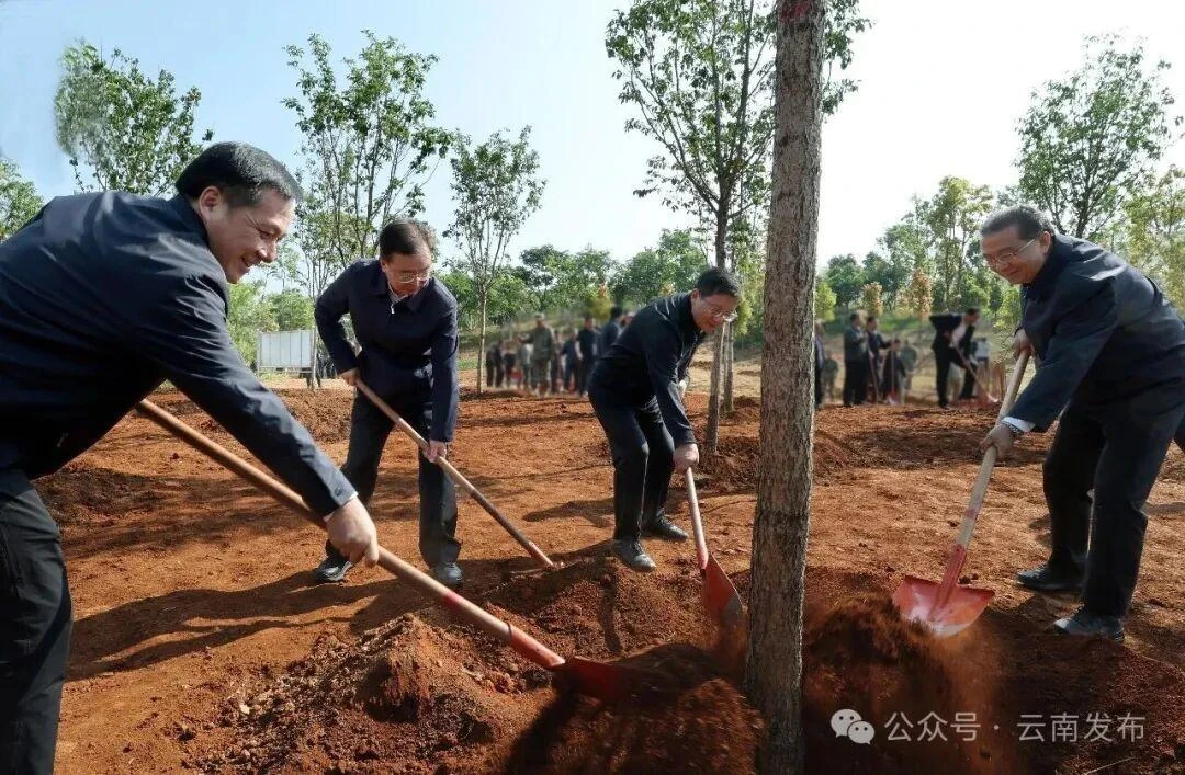 4月24日,王宁、王予波等省领导和驻滇部队领导,在昆明市晋宁区上蒜镇大湾山,同干部群众一起参加2026年义务植树活动。记者 雷桐苏 周灿 摄