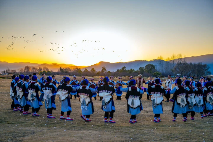 纳西族群众在拉市海载歌载舞 徐俊 摄