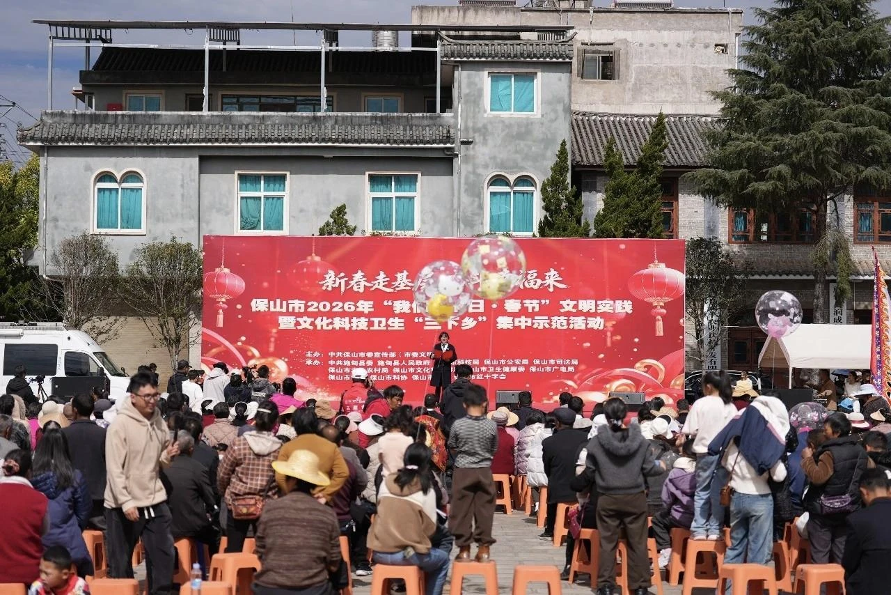 2月4日,保山市施甸县姚关镇姚关村乾元广场热闹非凡,保山市2026年“我们的节日·春节”文明实践暨文化科技卫生“三下乡”集中示范活动启动。此次活动整合宣传、文旅、卫健、农业等多部门资源,协同发力把文明新风、文化盛宴、科技服务、健康保障送到群众家门口,让群众在浓浓年味中收获满满幸福感。
