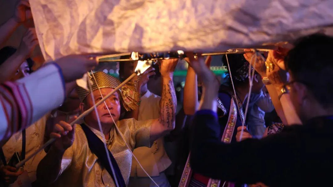 对于傣族人民而言,放孔明灯不仅承载着新年心愿,更是一项传承千年的古老仪式。傣语中,孔明灯被称为“贡菲”。当地群众认为,放飞这盏灯,既能带走过去一年的晦气与厄运,又能为新年带来平安喜乐、顺遂安康。