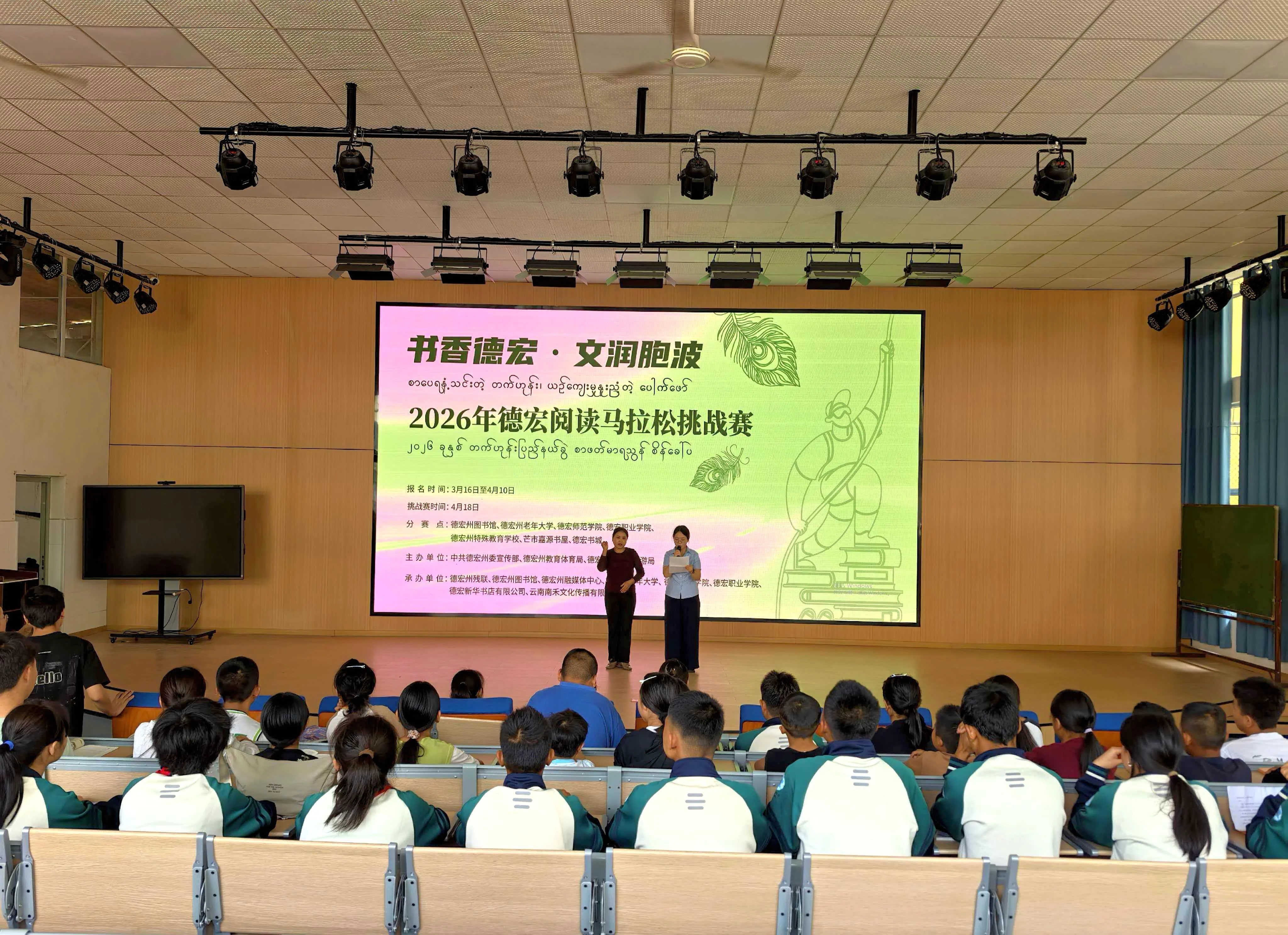 4月18日,由中共德宏傣族景颇族自治州委宣传部、德宏州教育体育局、德宏州文化和旅游局联合主办的“书香德宏·文润胞波”2026年德宏阅读马拉松挑战赛在芒市举办。挑战赛旨在通过趣味阅读挑战培育特色阅读推广活动,持续推进“书香德宏”品牌建设,激发全民阅读热情。