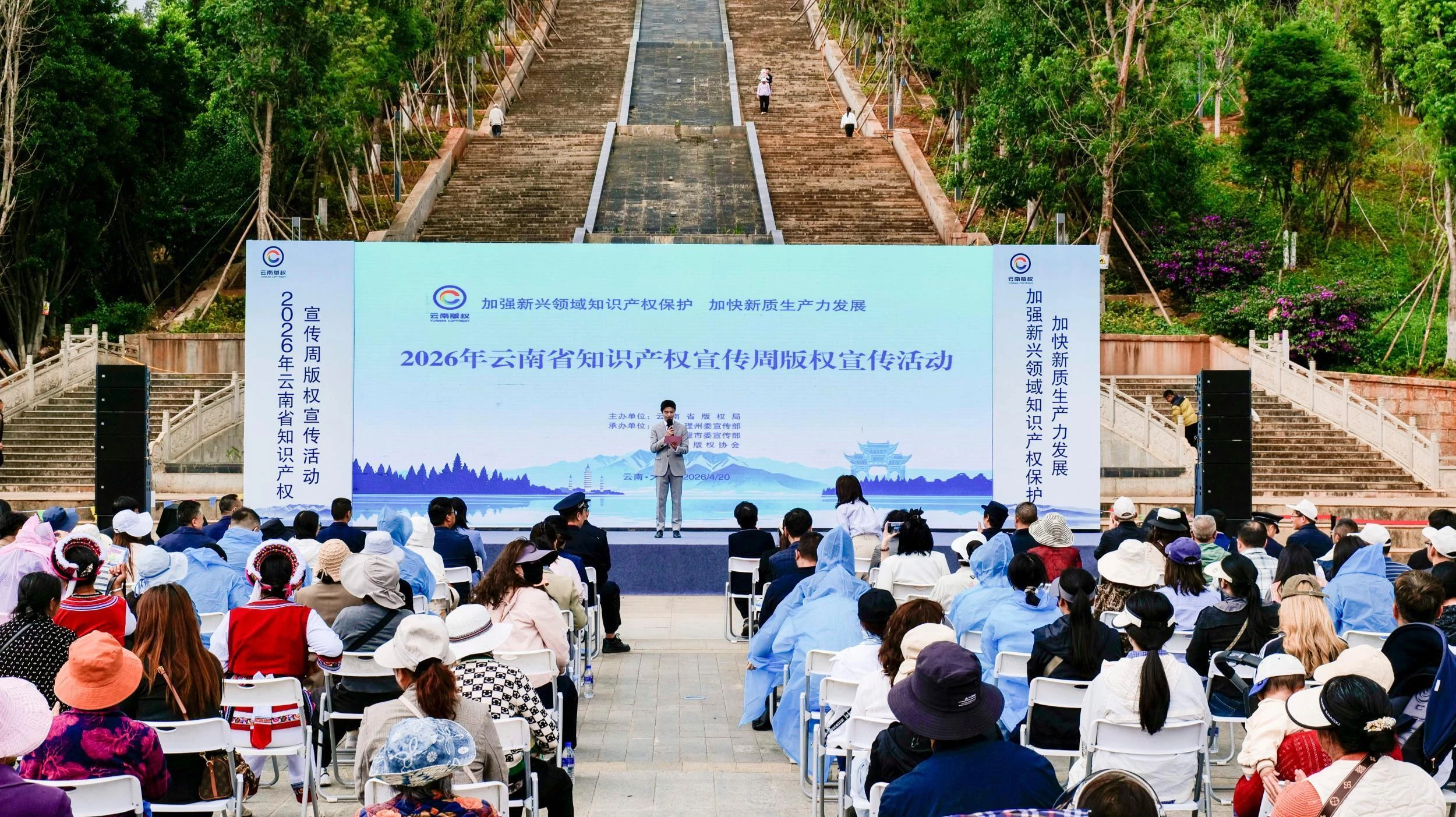 当天下午,2026年云南省知识产权宣传周版权宣传活动在大理明珠广场举行。活动以“加强新兴领域知识产权保护,加快新质生产力发展”为主题,由云南省版权局主办,中共大理州委宣传部、中共大理市委宣传部、云南省版权协会承办,省、州、市三级联动、多部门协同,深入推进全民阅读、强化版权保护、开展“护苗·绿书签”行动,普及版权法规,凝聚全社会尊重知识、崇尚创新、拒绝盗版、诚信守法的共识,以版权护航文化繁荣与新质生产力发展。
