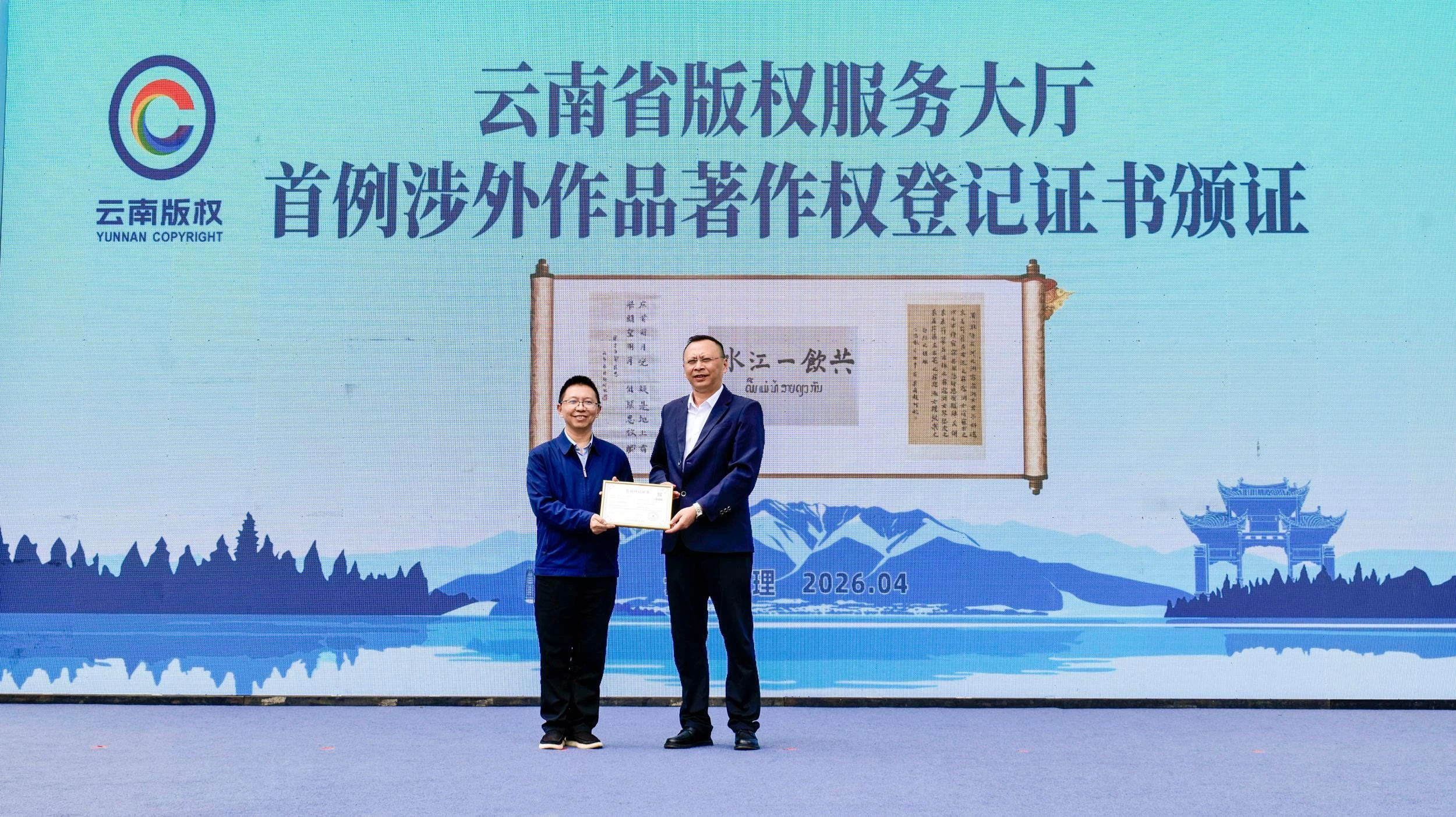 云南省版权服务大厅首例涉外著作权登记证书颁证仪式