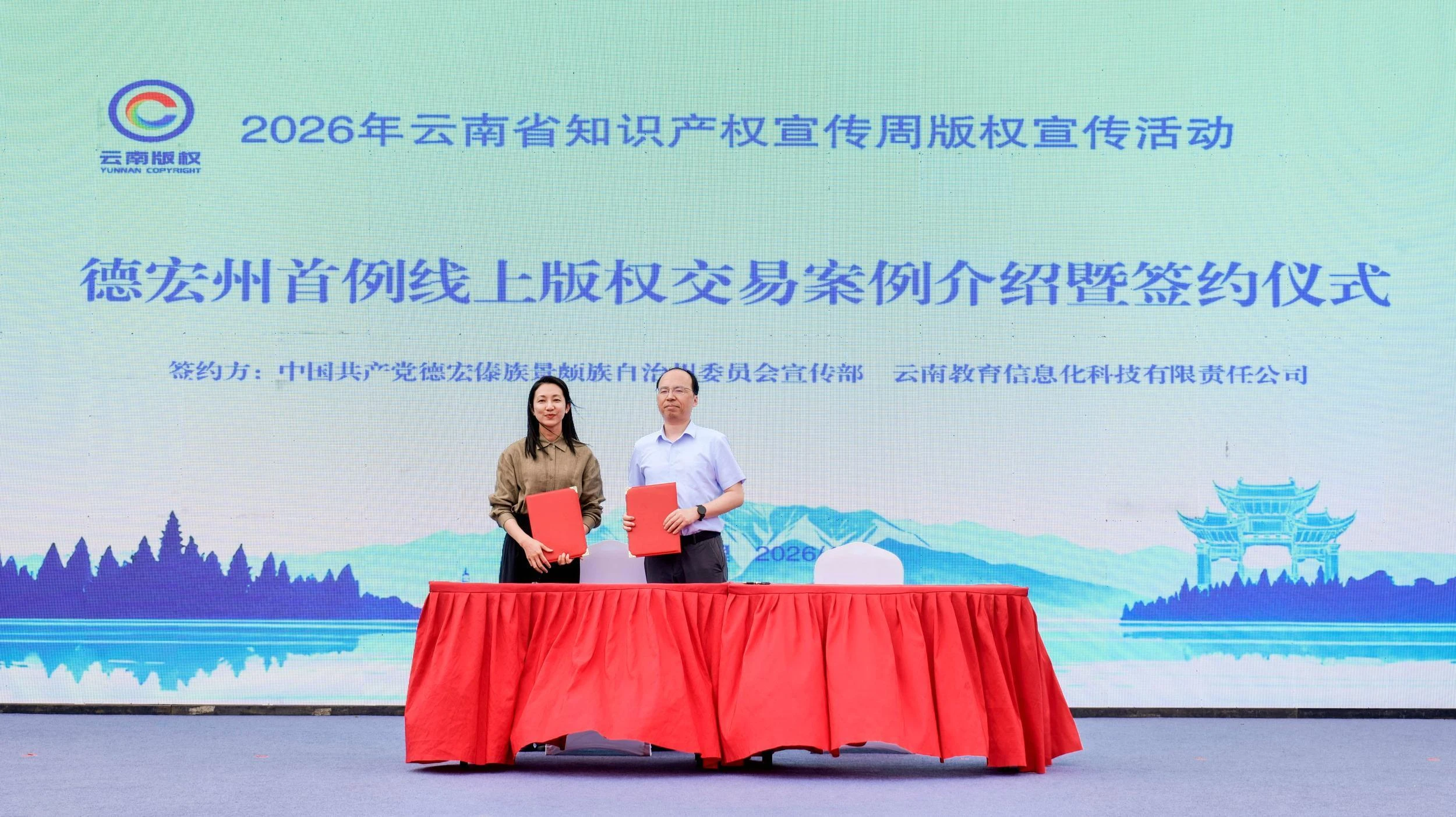 现场还进行了德宏州首例线上版权交易、云南民族大学版权资产运营、“民间文艺备案库”系统开发的签约仪式以及北京金山办公软件股份有限公司国产软件捐赠,共同凝聚起保护知识产权、推动全民阅读的强大合力,让尊重版权成为社会共识,让书香满溢七彩云南,让创新活力竞相涌流。