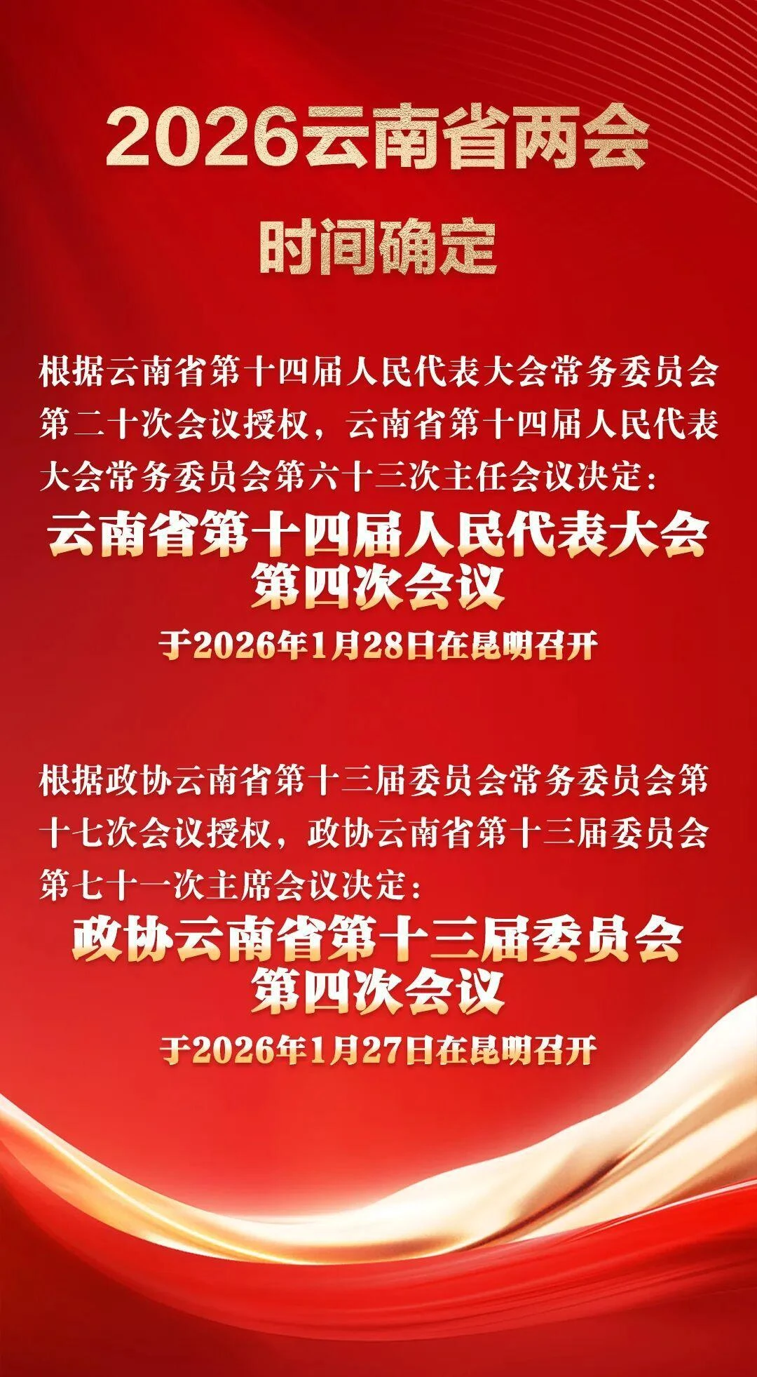 2026云南省两会时间确定!