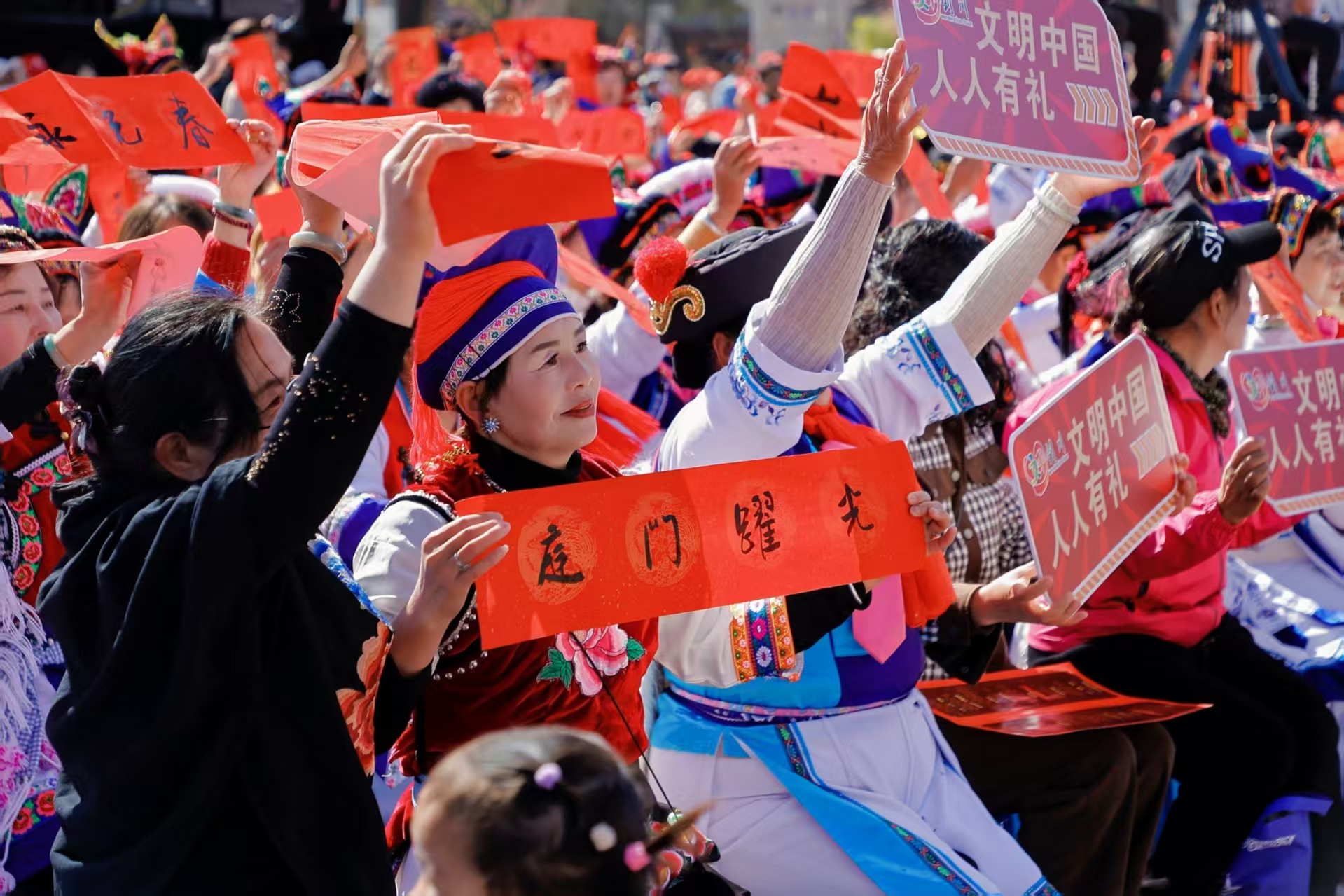 剑川各族群众参与“我们的节日·春节”主题文化活动暨“联墨飘香迎新春·古韵新风颂文明”原创楹联诗词展示活动。(中共剑川县委宣传部供图)