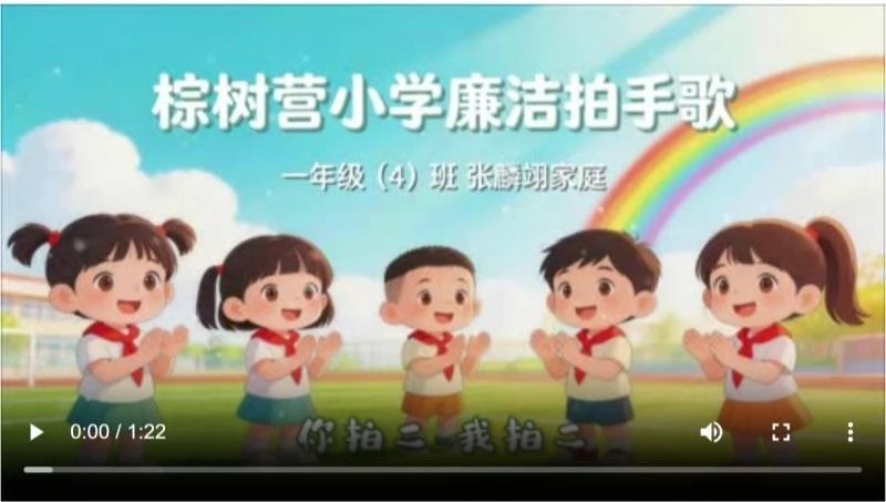 “你拍一、我拍一,棕小娃娃守纪律……” 课间的棕树营小学,清脆的童谣声伴着笑声在校园回荡 。这是学校将廉洁教育从课本走向生活、从校园延伸至家庭的生动实践。
