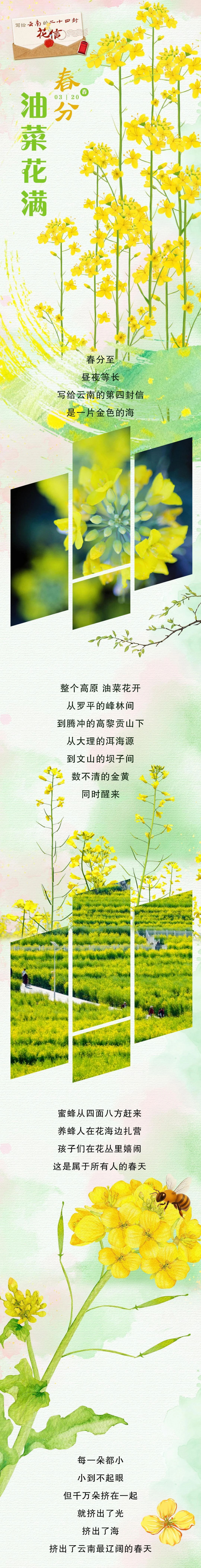 【编者按】二十四节气,是大地说给时间的细语。在云南,这些细语绽放成花,有了颜色与形状。“学习强国”云南学习平台推出“写给云南的二十四封花信”系列策划,以长图为信笺,以云花为信使,给云南写二十四封信。在绽放与凋零之间,触碰这片土地的温柔与浪漫。愿你在此,读一花一世界,见一季一山川。今日是第四封信——春分·油菜花满。