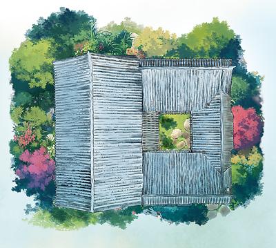 昆明市晋宁区福安村“一颗印”民居俯瞰图。 马睿姗 绘