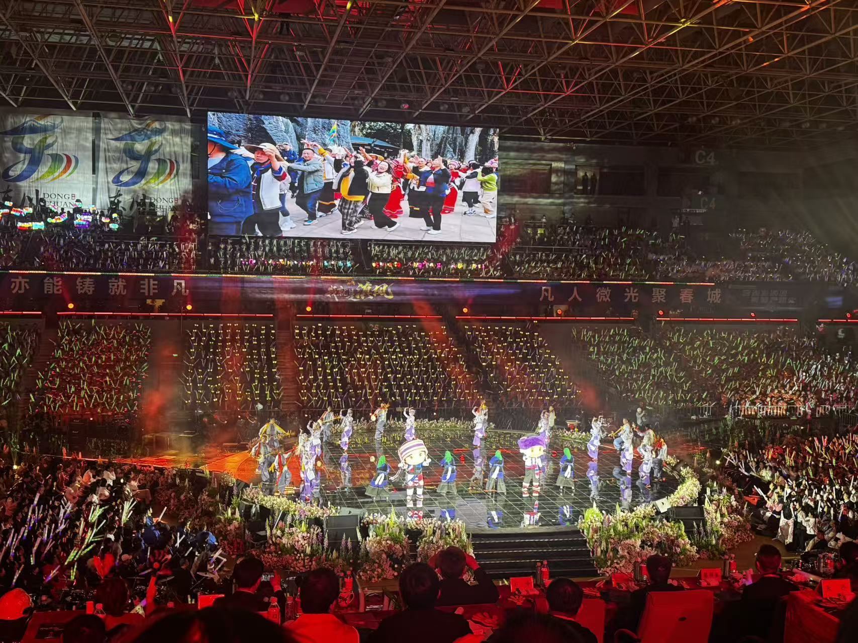 晚会以“平凡亦能铸就非凡——我就是滇风”为主题,坚持“群众演、演群众”,环卫工人、快递小哥等基层群体本色出演,专业团队全程陪演。现场设置跨行业跨区域拉歌环节,万名观众荧光互动、同心打跳,原创主题曲《我就是滇风》将氛围推向高潮。
