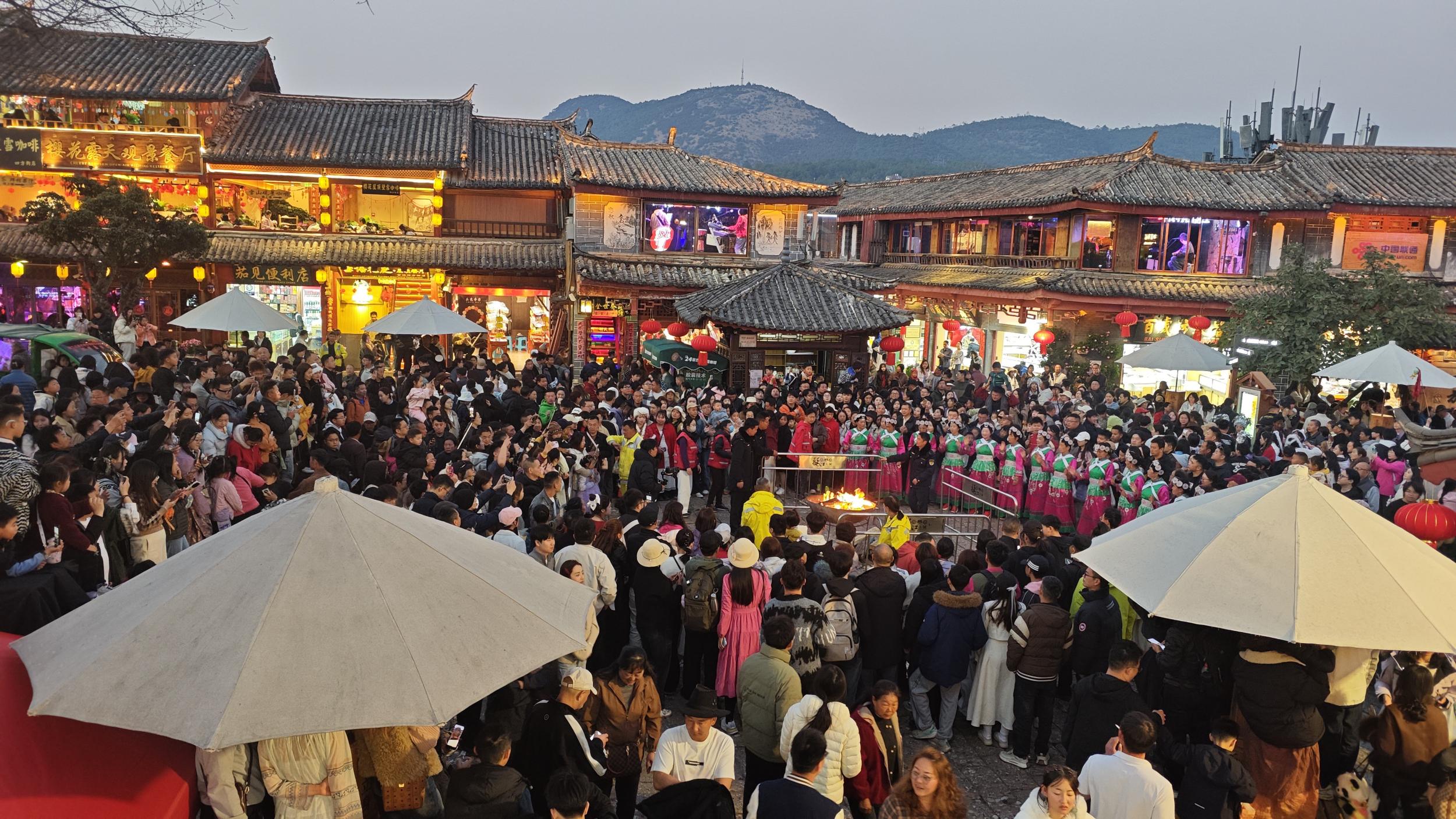为丰富春节文旅供给,古城区紧扣“舍不得的丽江”城市IP,精心策划推出一系列沉浸式、体验式新春文旅活动。大研古城举办春花展、新春送福、非遗展演及四方街篝火晚会;玉水河滨街区开展新春嘉年华、纳西文化快闪、提灯夜游巡游;黑龙潭古戏台奏响古乐歌会,束河古镇上演民族广场舞,让游客在移步换景间深度感受纳西文化独特魅力。接下来,中济海公园还将接续举办棒棒会、元宵灯会等特色节庆活动,持续激活节日文旅市场,让年味不断档、欢乐不落幕。
